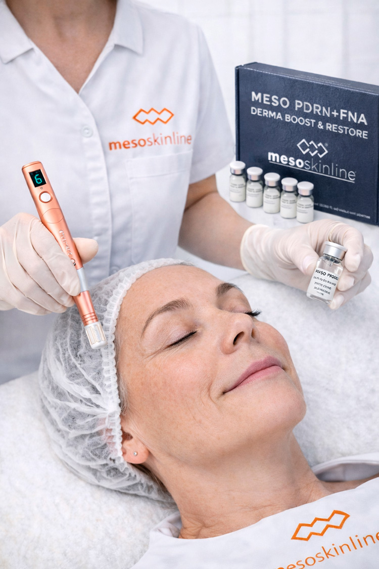 PDRN-tFNA is an advanced combination of biologically active nucleotide fragments used in regenerative skincare and non-invasive mesotherapy to support the skin’s natural repair and renewal processes.